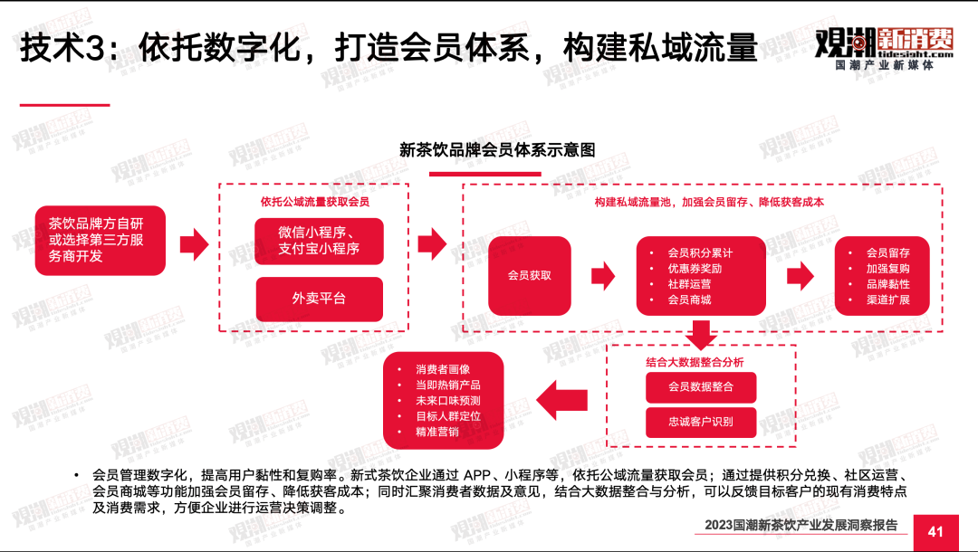 “全域”是新消费时代各领域的渠道布局趋势。数字化技术的持续提升以及当代消费者“互联网原住民”的身份属性,分别从供需两端推动新茶饮建设包含线上/线下、公域/私域的全域渠道,并在各渠道之间做数据打通,从而实现消费市场的广泛覆盖以及消费者的个性化分析。