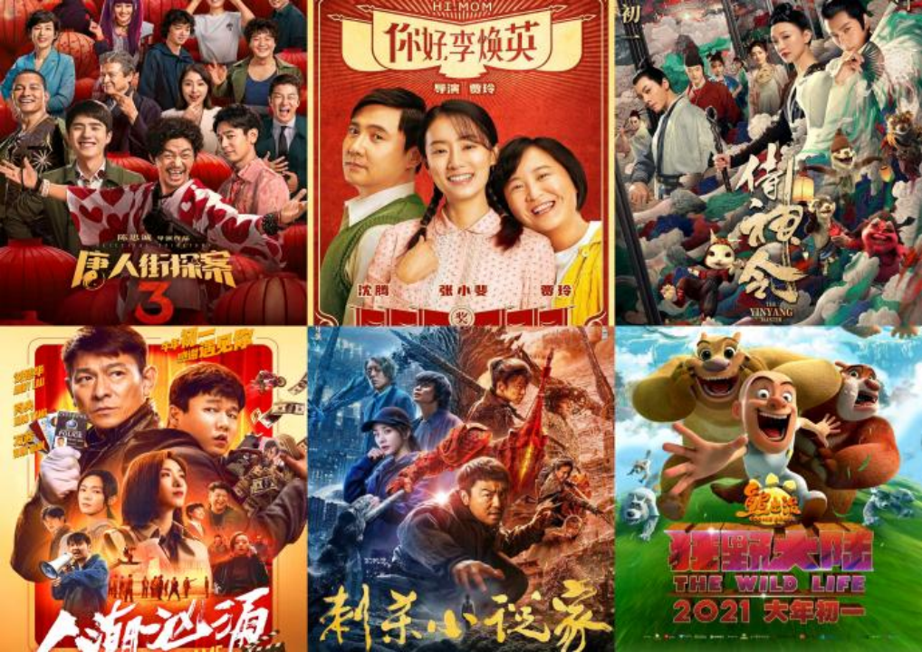 21年,喜剧片有《唐人街探案3》和《你好,李焕英》,奇幻片有《侍神令》,爱情片有《人潮汹涌》,奇幻&冒险片有《刺杀小说家》,动画片有《熊出没·狂野大陆》。