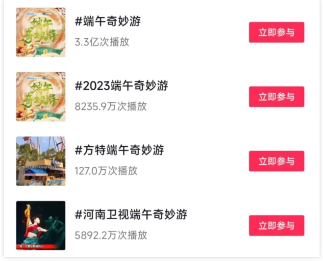 在《端午奇妙游》播出后不久,就有大量抖音用户发布了包含晚会全片以及单个节目的剪辑内容,“河南春晚官方”抖音账号正式上线节目内容反而是在2个多月后。而短视频用户自发的二次创作,不仅为节目内容带来了大量曝光,还合力推高了“端午奇妙游”的话题热度。在抖音平台上,仅“端午奇妙游”话题就获得了超过3.3亿次播放,还产生了近百个衍生话题。而同样在短视频平台快速出圈的《唐宫夜宴》,其话题播放量更是达到9.7亿次。